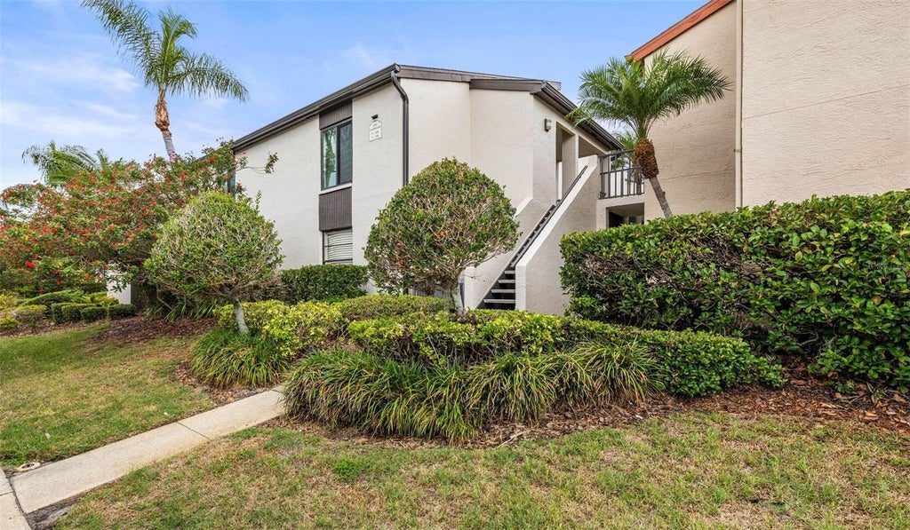 LOW HOA and a beautiful unit. This low HOA of $375/month covers water, sewer, trash, pest control, insurance, as well as pool and exterior maintenance. This community is one of the highest elevations in Pinellas County, so no flood insurance required. It is also pet friendly and just around the corner of a dog park. All ages welcome as this is NOT a 55+ building. Included with the unit is your own assigned, covered parking just outside your front door for convenience. This second floor unit has been meticulously maintained including new carpet (2020), AC (2023), hurricane windows (2024), and hot water heater and whole home surge protection (2025). While easily accessible to US 19, inside the unit is quiet. This location is ideal as it is .5 miles to shopping and entertainment and less than 10 miles to St. Pete-Clearwater Airport and 17 miles to Tampa International. For you beach lovers, this home is only 11 miles to the beautiful sands of world famous Clearwater Beach!